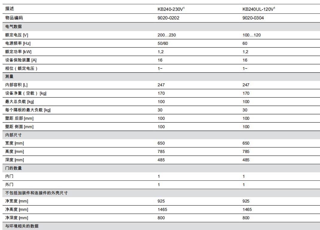 模型 KB 240 | 低温培养箱 利用压缩机技术