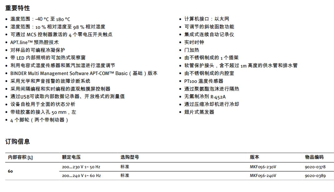 MKF 系列 BINDER 环境模拟箱理想适用于依据 DIN 标准和 IEC 标准按照通用的温度和气候检测标准进行任何冷测试和热测试。高操作舒适性和大量批量装备则为操作和处理提供了便利性。