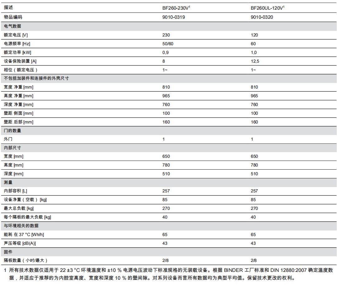 模型 BF 260 | 标准-培养箱 利用循环空气
