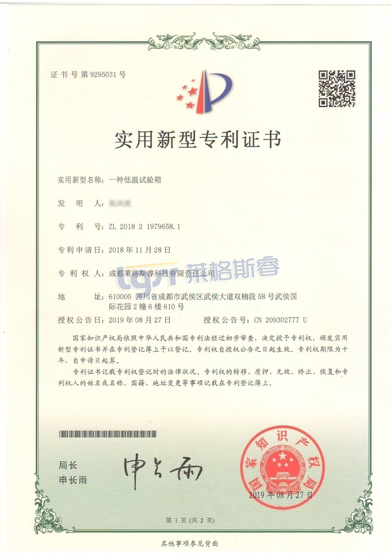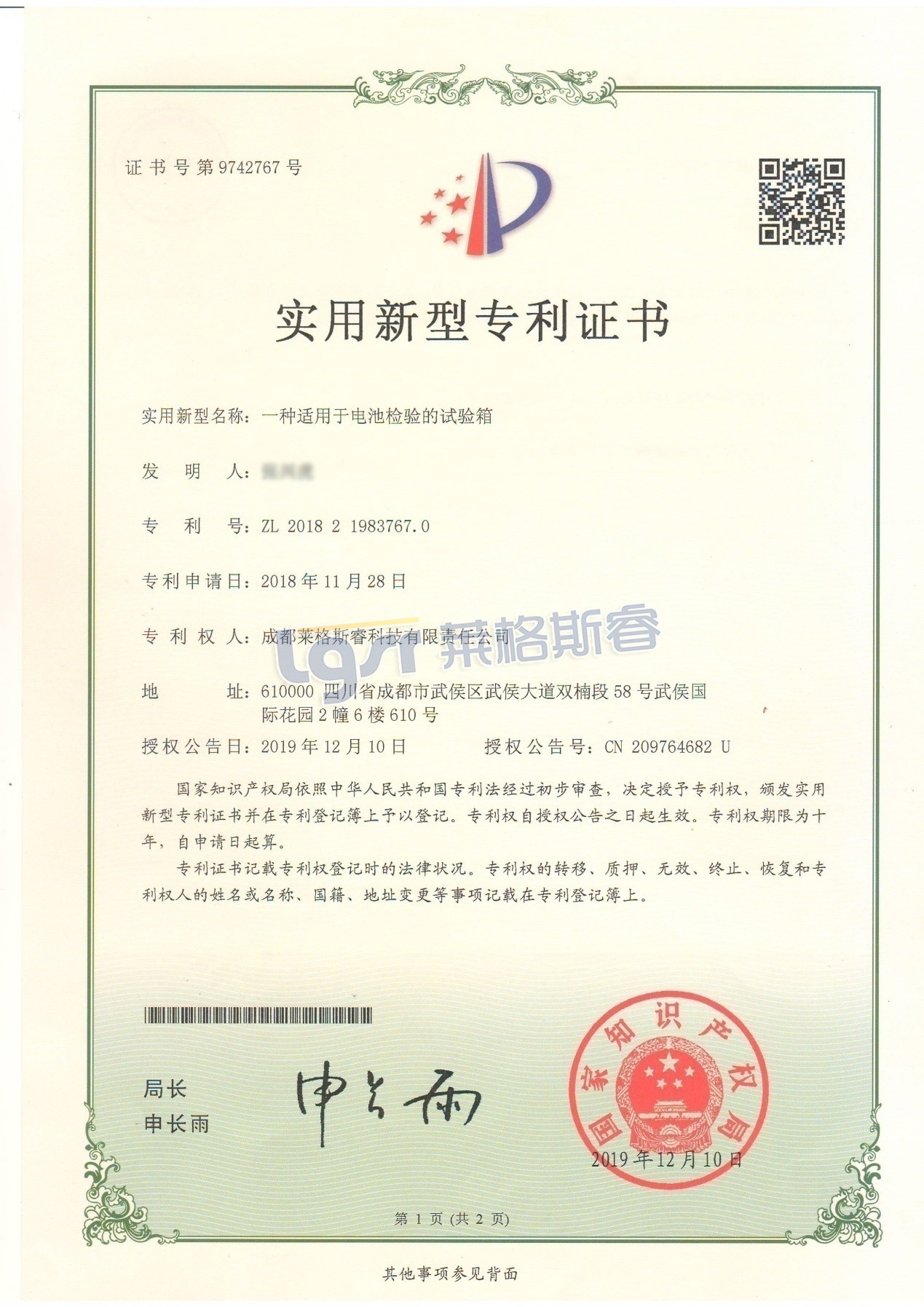 • 专利证书一